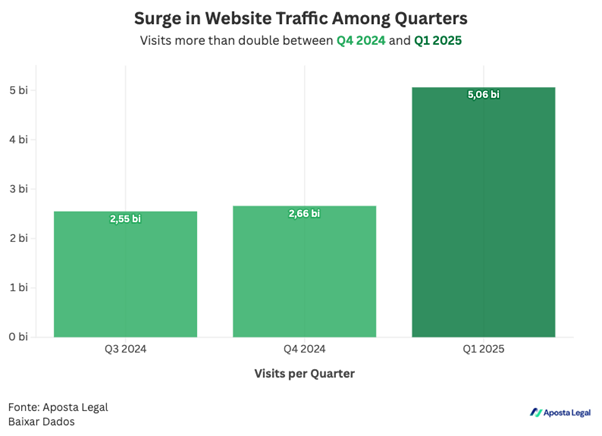 In Q1 2025, growth was staggering, positioning Brazil as one of the world’s leading betting markets. An Aposta Legal study revealed that licensed websites in Brazil received over five billion visits, an average of more than 650 clicks per second during the first three months of the year.